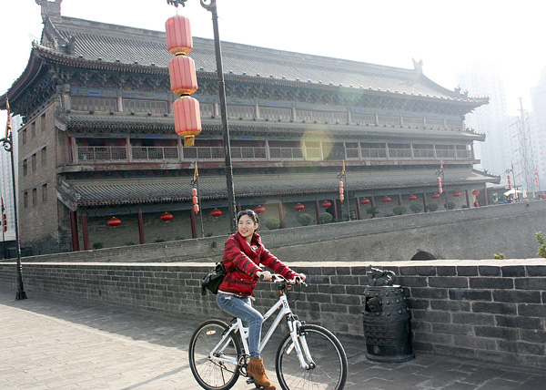 Ancient City Wall is the first landmark visitors will encounter in Xi'an, stretches round the old city. It's very special among China there’s a completed and occlusive wall in city center. When I rode bicycle on the wall with very warm sunshine in Winter, I felt that it was really an enjoyment, leisure and free. Cycling on City Wall is amazing way to overlook Xi'an. On the way I saw people doing exercise in river bank parks, the railway station and Muslim quarters with ancient style house, even the Guangren Lama Temple. Most buildings inside the circle of city wall are ancient style or very short, but the outside building are very high and modern. I thought that's like taking time boat.