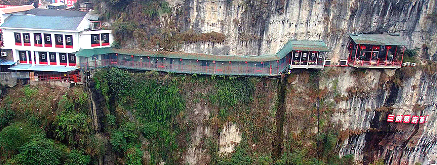 Dining in such a cave restaurant would be a unique experience. Customers can taste distinctive regional cuisine and enjoy sweeping views of the Yangtze River, all in one. It is more about the overall experience that the food itself, something truly different. Also, watching live bungee jumpers across the river add more excitement.