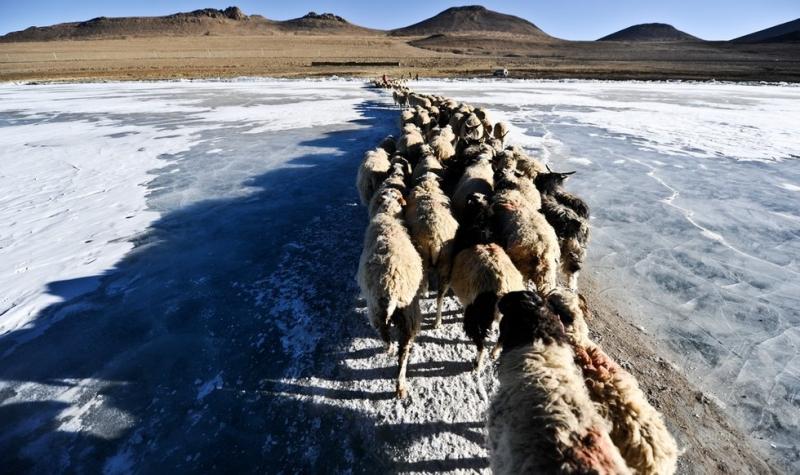 In the bitterly cold winter, when the pasture sees few grass and the Poom Yumco Lake is frozen, the Tui villagers drive the flocks of sheep to the island in the middle of the Lake to enjoy the fresh fine grass for an entire month before the ice melts. The villagers have kept this tradition for more than a thousand years.