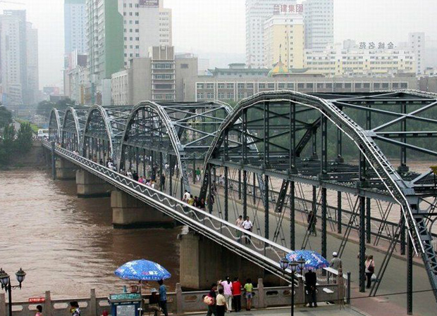 The Yellow River Iron Bridge was first established as a pontoon bridge in 1372, the fifth year of Hongwu Period in the Ming Dynasty. At that time, floods destroyed the bridge or ev...