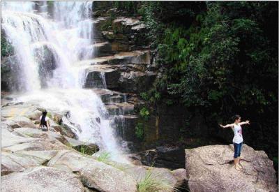 The big waterfall has extremely rich water source. It is like a green dragon howling out from the canyon. The hundred meters boundary the moisture is misty and finally encircles in...