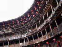 Yuchanglou has been nicknamed the "zigzag building", because the vertical wooden post structure is not straight and perpendicular, but zigzags left and right(some even at 15 degree angle). It was built that way due to an error measuring the building materials. But in spite of this apparent infirmity, this tall tulou withstood 700 years of natural elements and social turmoil. Yuchanglou's outer ring is 36 m in diameter and boasts five storeys, with 50 rooms on each floor.
