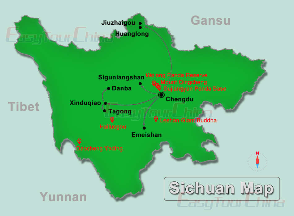 in China's southwestern hinterland, Sichuan has been historically known as the "Land of Abundance". The province has 5 UNESCO world natural and cultural heritage sites: Jiuzhaigou Valley, Huanglong Scenic Area, Emei Mountain with the Leshan Giant Buddha, Mount Qingcheng with Dujiangyan Irrigation System and Sichuan Giant Panda Sanctuaries. Almost every variety of tourist resources is available here: snow-capped mountains, sublime plateaus, deep valleys, jewel-like lakes, ravines, hills, plains, rivers, hot springs, waterfalls, limestone caves, and even danxia formation. Sichuan has something for every traveler, whether you’re intrepid adventurers, serious hikers, history buffs, active family, foodies, or ordinary tourists seeking relaxing vacations.
