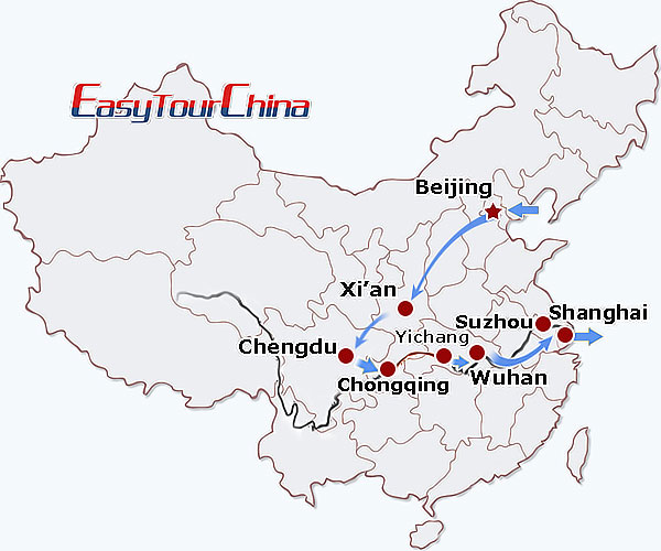Destinations: Beijing - Xi'an - Chengdu - Chongqing - Yangtze River - Yichang - Wuhan - Shanghai - Suzhou - Shanghai