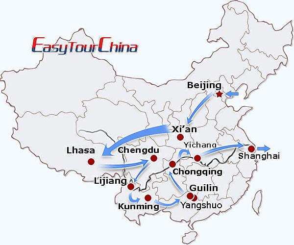 Destinations: Beijing - Xi'an - Lhasa - Chengdu - Lijiang - Kunming - Guilin - Yangshuo - Chongqing - Yangtze River Cruise - Yichang - Shanghai
