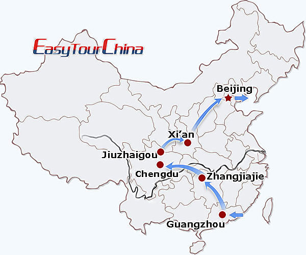 Destinations: Guangzhou - Zhangjiajie - Chengdu/Jiuzhaigou - Xi'an - Beijing
