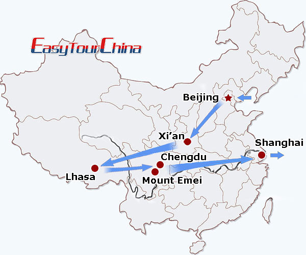 Destinations: Beijing - Xian - Lhasa - Chengdu - Emei Mountain - Chengdu - Shanghai