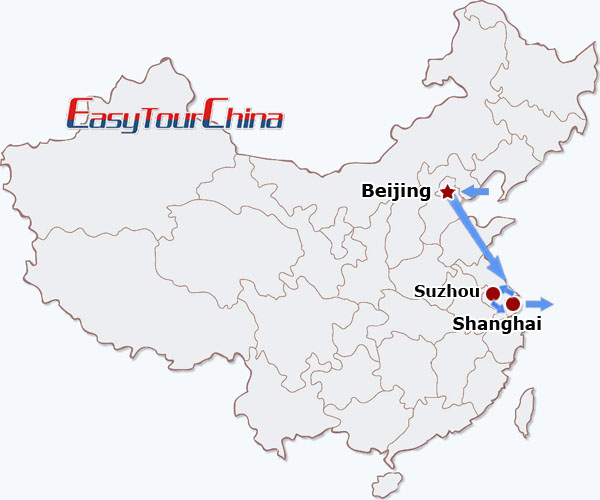 China travel map - Beijing to Shanghai Tour by High Speed Train